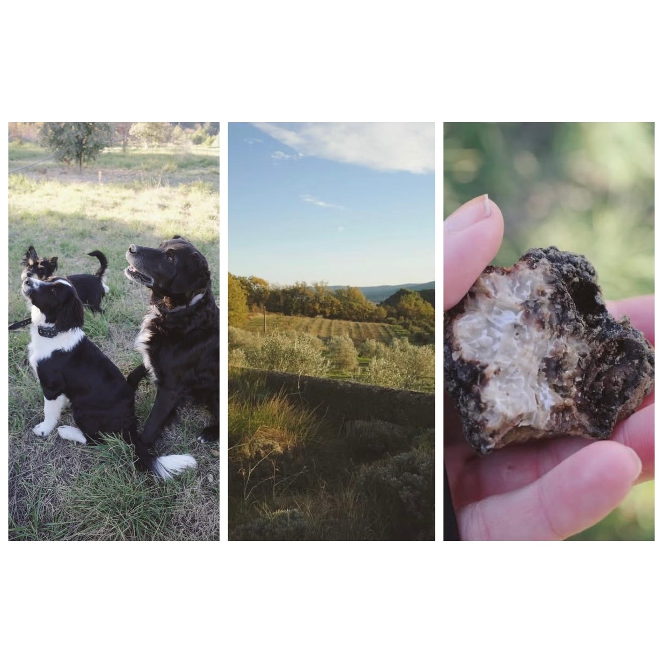 As for the process, that day, once a dog latched onto a scent and dug their paws deep, one of us would lovingly shoo the pup away and carefully dig out the truffle from the soil. The dogs are more likely to destroy it…because paws. Particularly the border collie pup, After, named for his birth during an epic afterparty. He zoomed himself into body flips fairly often, so I wouldn’t trust him with delicacies. Absurdly cute, as were the others, he held court with a regal black Labrador, Foudre (or lightning), and a terrier whose name I genuinely have forgotten because she was most commonly referred to as Asshole—but she was the best at the work if not affectionate to human life.