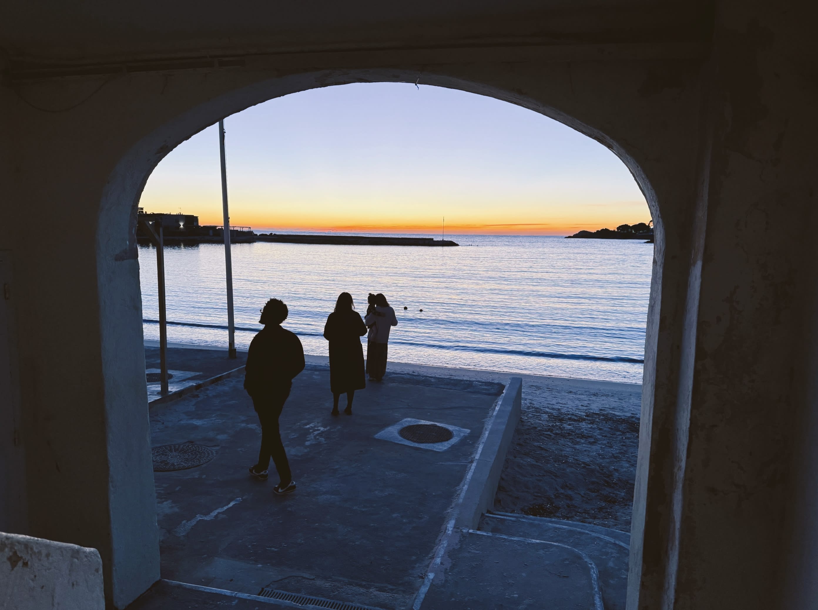 Soon soothed by sea spray, Tempier Blanc, and conversation, I joined the crowded kitchen while a new friend—also a chef and stylist—directed the meal effort. To be honest, as the latest arriving guest, my work was centered more on entertaining a little girl, which I was eager for. I missed my own boy and gravitate toward children for their robust energy and talking points: dinosaurs, ghosts, and fairies. Just before dinner, a round of mini-martinis appeared. We threw on sweaters to walk to a nearby viewpoint, glasses in hand, as we cruised the narrow streets of Bandol. After descending graffiti-tagged stairs, we turned a corner where the sky suddenly appeared. An unreal sunset dropped, a landscape of perfect complementary colors, naval orange against a steely blue.