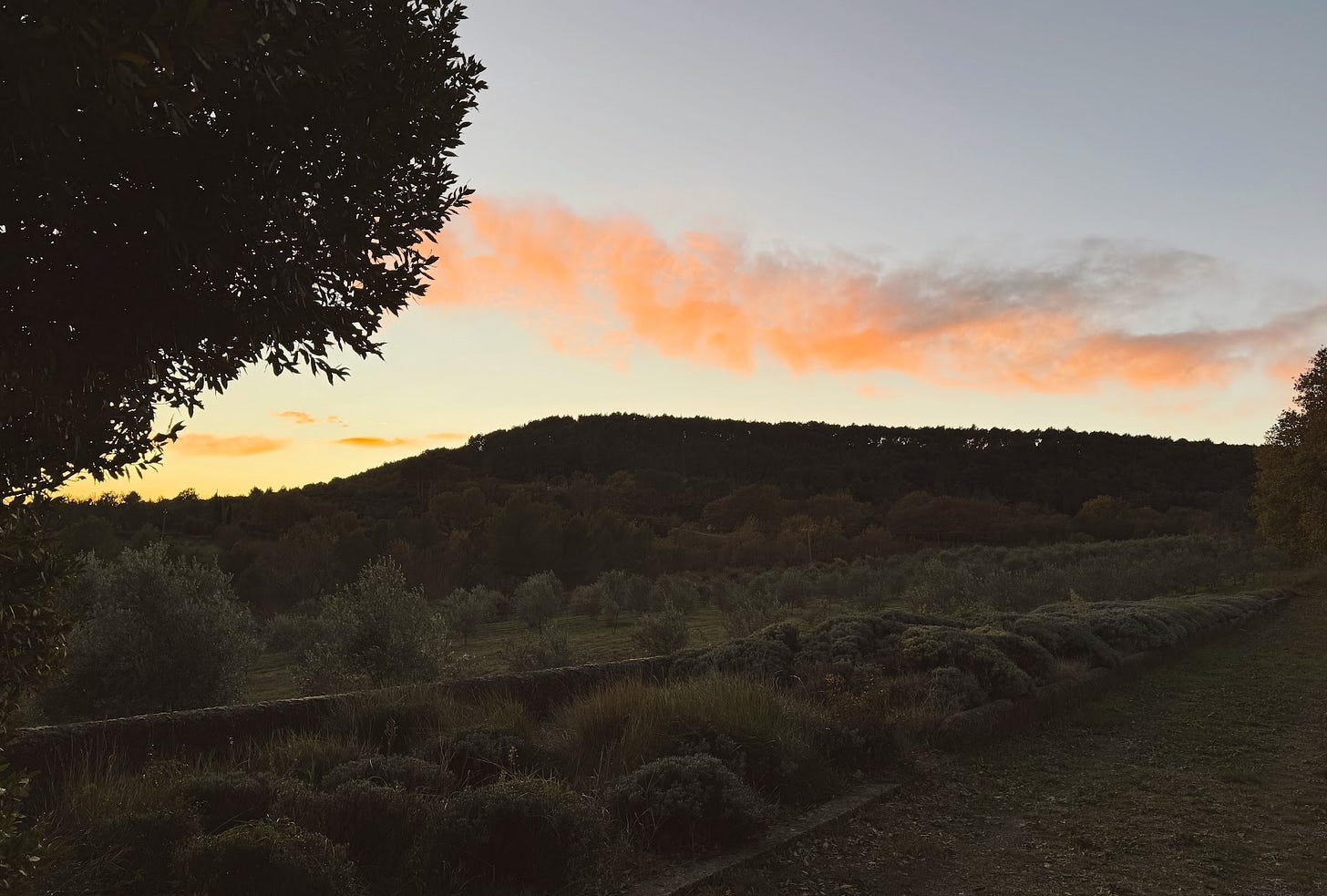 I arrived in Roussillon at sunset after a long drive of contrasts: the neoclassical and art deco color pop of Nice, Aix-en-Provence with its urban sprawl, the countless vineyards and rolling farmland beyond, the thick expanse of emerald treeline hugging Luberon Massif, and the faded denim sky where the oncoming golden hour was less an overall effect but rather a daily trick of clouds infused with orange and pink.