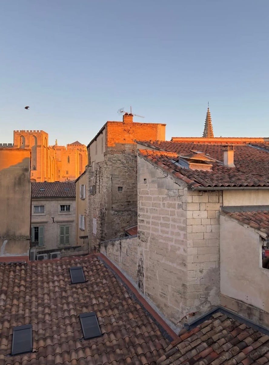 While in Le Sud, I had a talent for arriving at sunset. Approaching Avignon, the sun began its warm descent over the Rhône River, along which I drove in parallel until entering the commune. The sudden reveal of Avignon is a surreal scene unless you are comfortable with medieval stone ramparts as your home base. It is small and winding, much in the way of Venice, but far more stern and neutral in palette. Once secure in my attic-floor perch, the sun spotlighted the terracotta barrel tiles, their rows ignited as so many peaches glowing a hot orange.